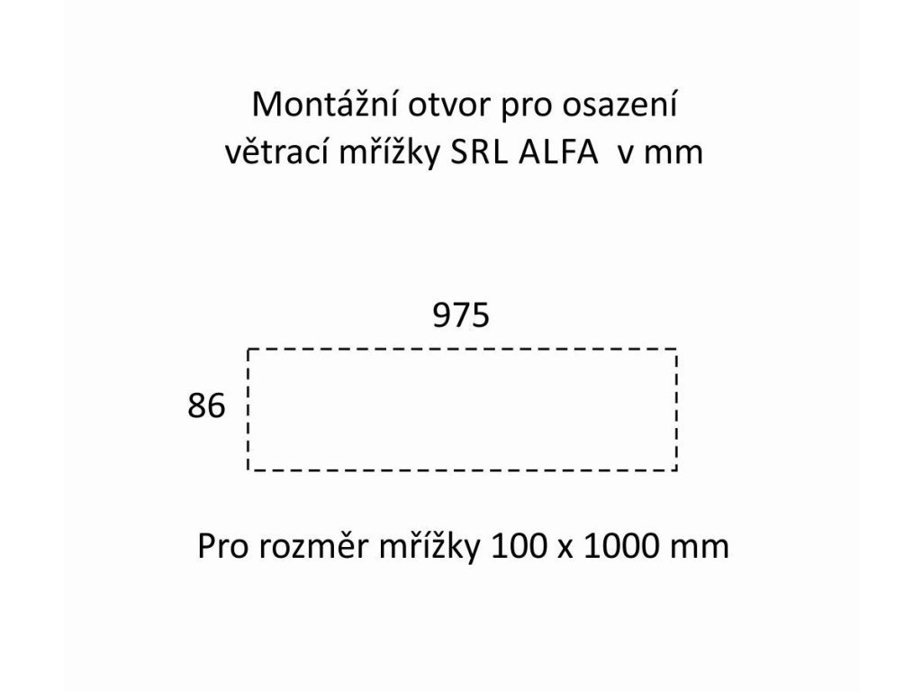 MONTÁŽ: délka montážního otvoru je o 25 mm kratší než je celková délka mřížky (tz.12,5 mm z každé strany ), šířka montážního otvoru je o 14 mm užší než je celková šířka mřížky (tj. 7 mm z každé strany).