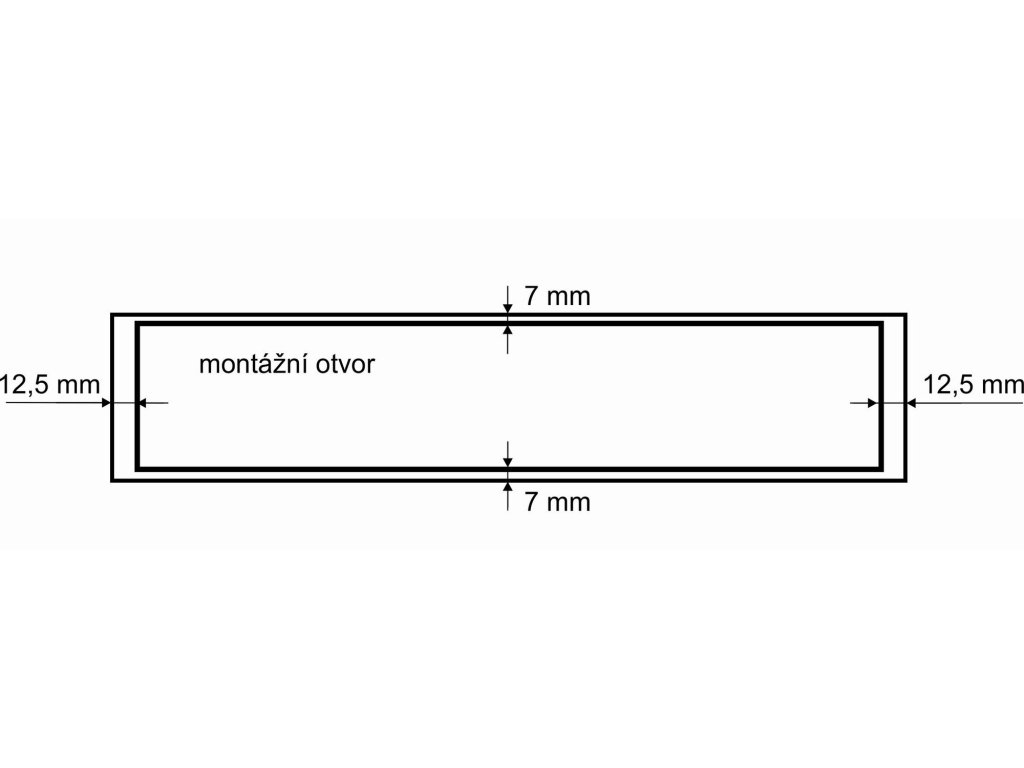 MONTÁŽ: délka montážního otvoru je o 25 mm kratší než je celková délka mřížky (tz.12,5 mm z každé strany ), šířka montážního otvoru je o 14 mm užší než je celková šířka mřížky (tj. 7 mm z každé strany).