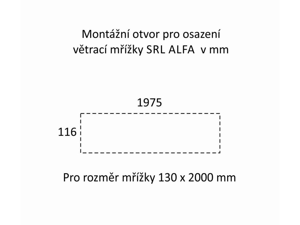 MONTÁŽ: délka montážního otvoru je o 25 mm kratší než je celková délka mřížky (tz.12,5 mm z každé strany ), šířka montážního otvoru je o 14 mm užší než je celková šířka mřížky (tj. 7 mm z každé strany).