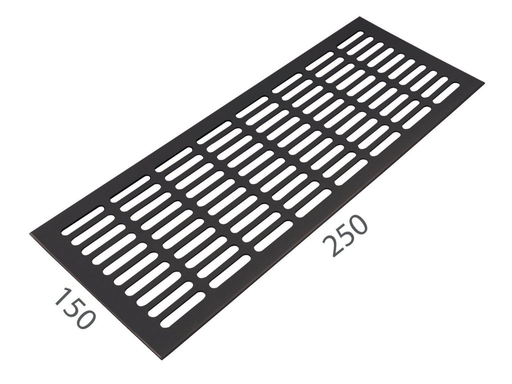 Větrací mřížka se šířkou 150 mm je vyrobena z hliníku a je povrchově upravena.
