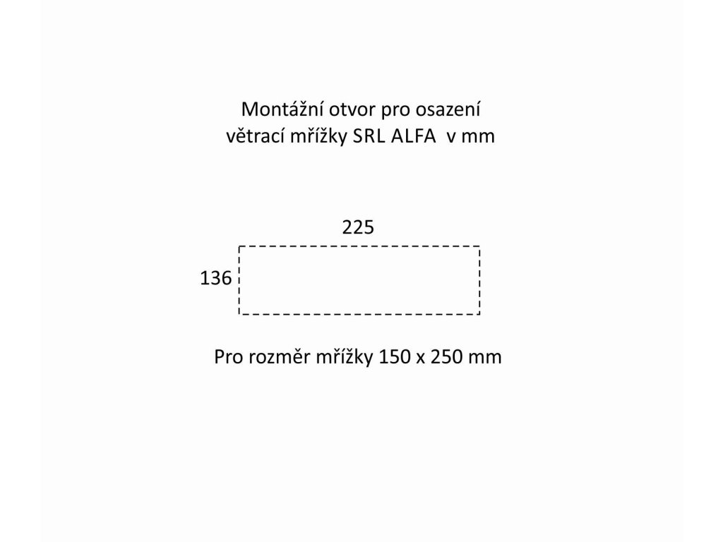 MONTÁŽ: délka montážního otvoru je o 25 mm kratší než je celková délka mřížky (tz.12,5 mm z každé strany ), šířka montážního otvoru je o 14 mm užší než je celková šířka mřížky (tj. 7 mm z každé strany).