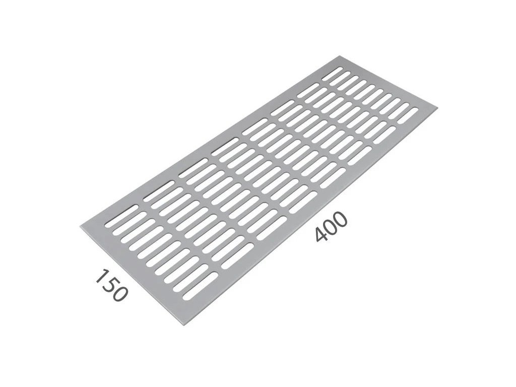 Větrací mřížka se šířkou 150 mm je vyrobena z hliníku a je povrchově upravena.