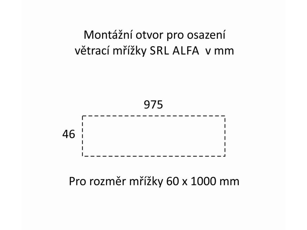 MONTÁŽ: délka montážního otvoru je o 25 mm kratší než je celková délka mřížky (tz.12,5 mm z každé strany ), šířka montážního otvoru je o 14 mm užší než je celková šířka mřížky (tj. 7 mm z každé strany).