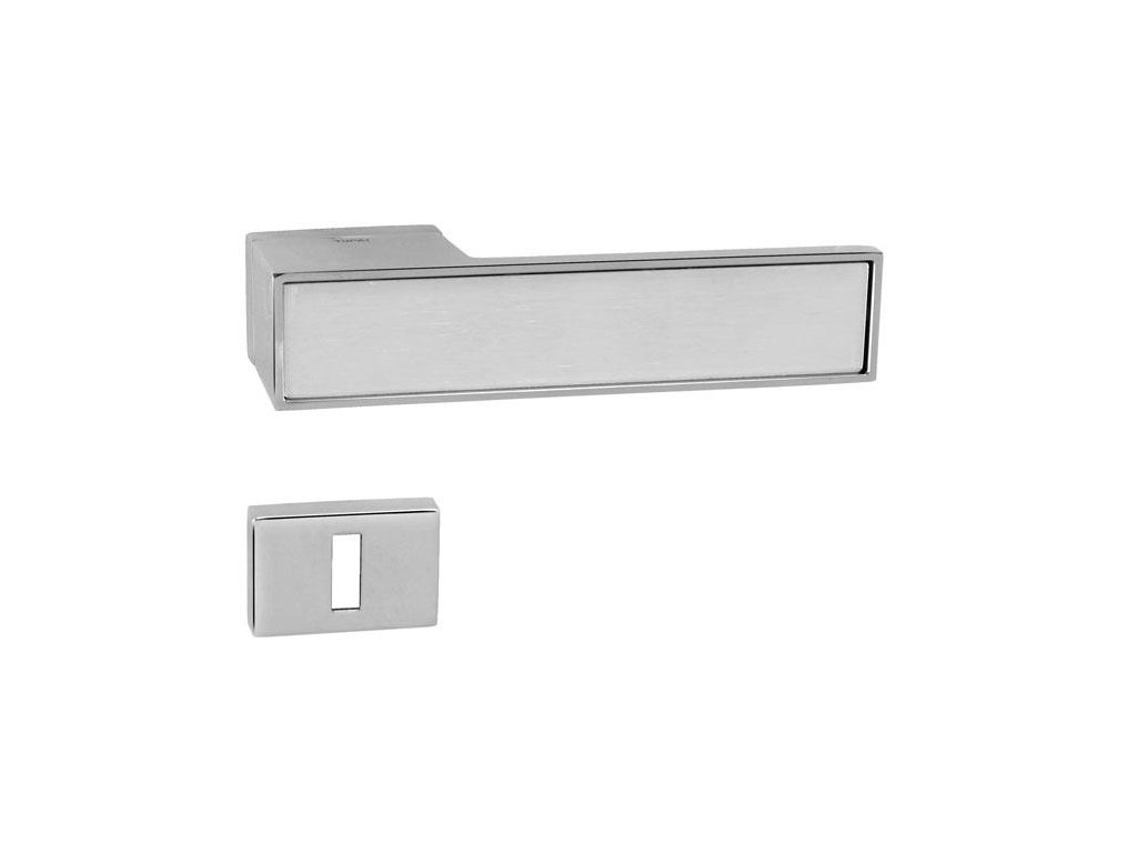 Rozetová klika na interiérové dveře s obdélníkovou rozetou je vyrobena z materiálů vysoké kvality - zamak a je povrchově upravena. Rozeta má rozměry 52 mm x 35 mm a standardní tloušťku 11 mm. Samotná rozeta je součástí designu kliky.