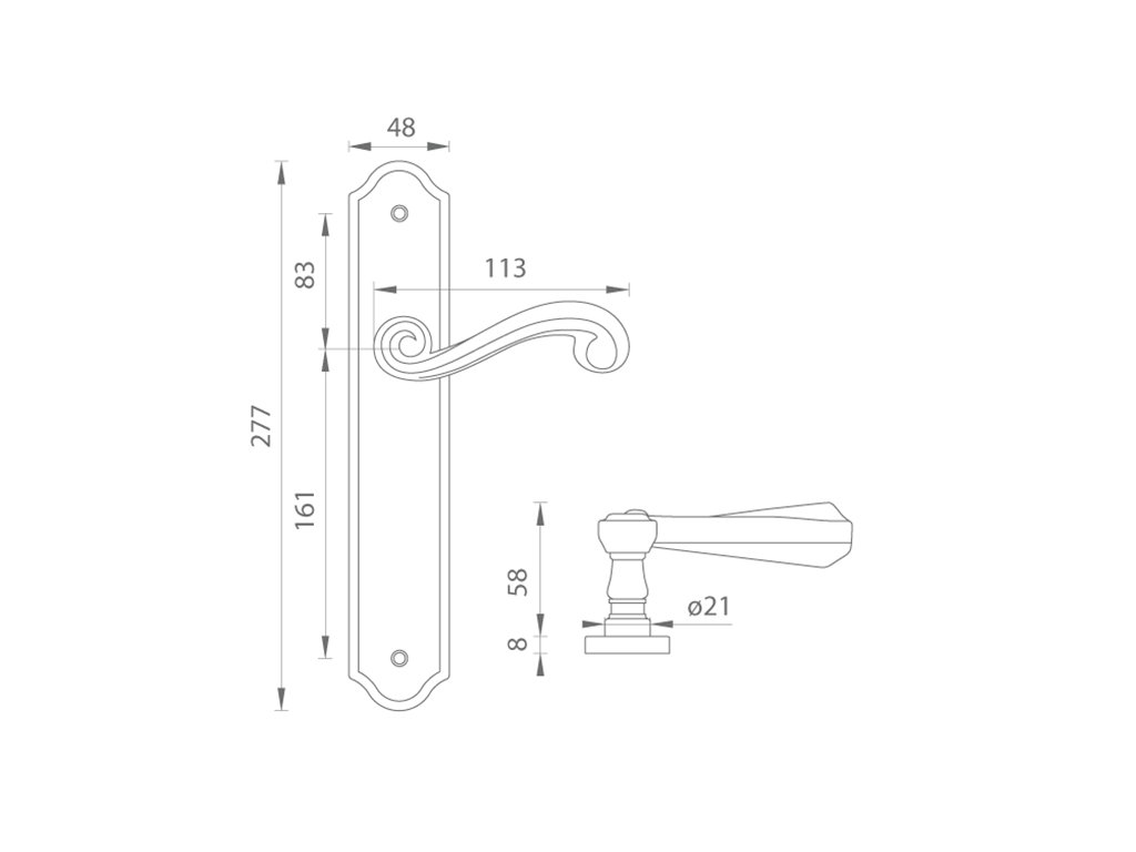 Štítová klika na interiérové dveře s rustikálním štítem je vyrobena z materiálů vysoké kvality - mosaz a je povrchově upravena. Rustikální štít má rozměry 48 mm x 277 mm a klika obsahuje vratný mechanismus.