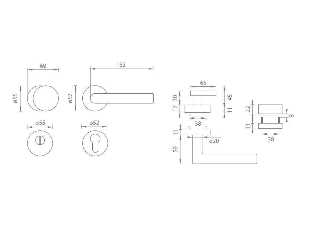 Bezpečnostní interiérová rozetová klika na vchodové a bezpečnostní dveře s kulatou rozetou s překrytím cylindrické vložky je vyrobená z materiálů vysoké kvality – zamak / ocel a je povrchově upravená. Kulatá rozeta má průměr 52 mm a tloušťku 17 mm.