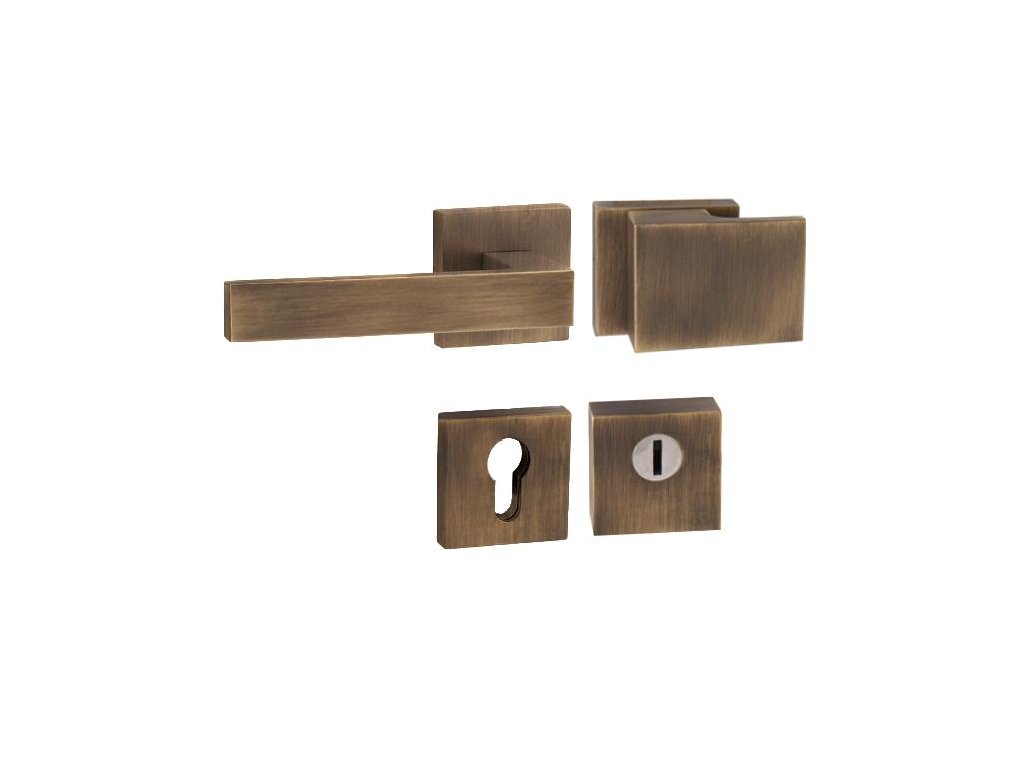 Rozetová klika na vchodové a bezpečnostní dveře s hranatou rozetou s překrytím cylindrické vložky je vyrobena z materiálů vysoké kvality - zamak / ocel a je povrchově upravena. Hranatá rozeta má rozměry 52 mm x 52 mm (resp. 55 mm x 52 mm) a tloušťku 17 mm.