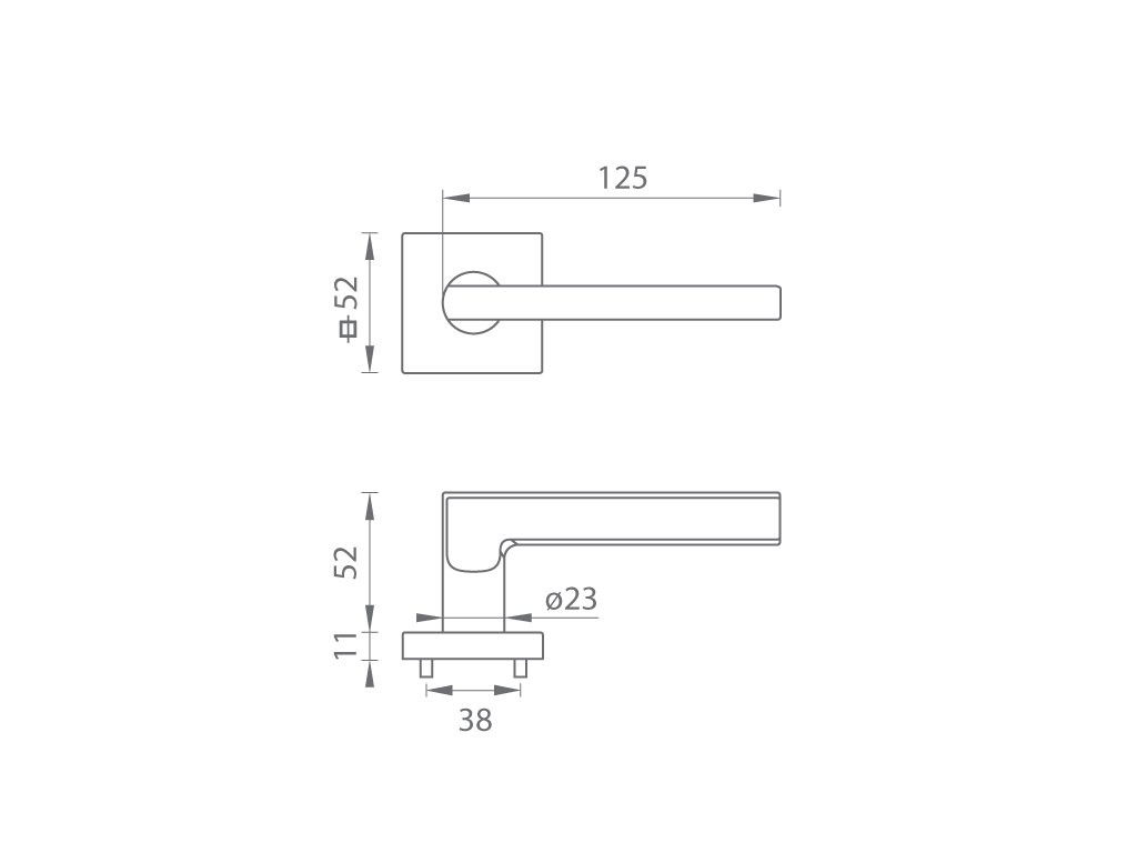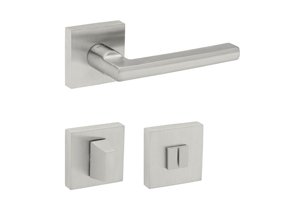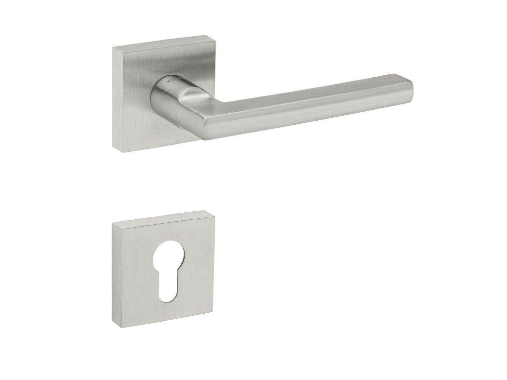 Rozetová klika na interiérové dveře s hranatou rozetou je vyrobena z vysoce kvalitní nerezavějící oceli, známé jako nerez a je povrchově upravena. Rozeta má rozměry 52 mm x 52 mm a standardní tloušťku 11 mm.