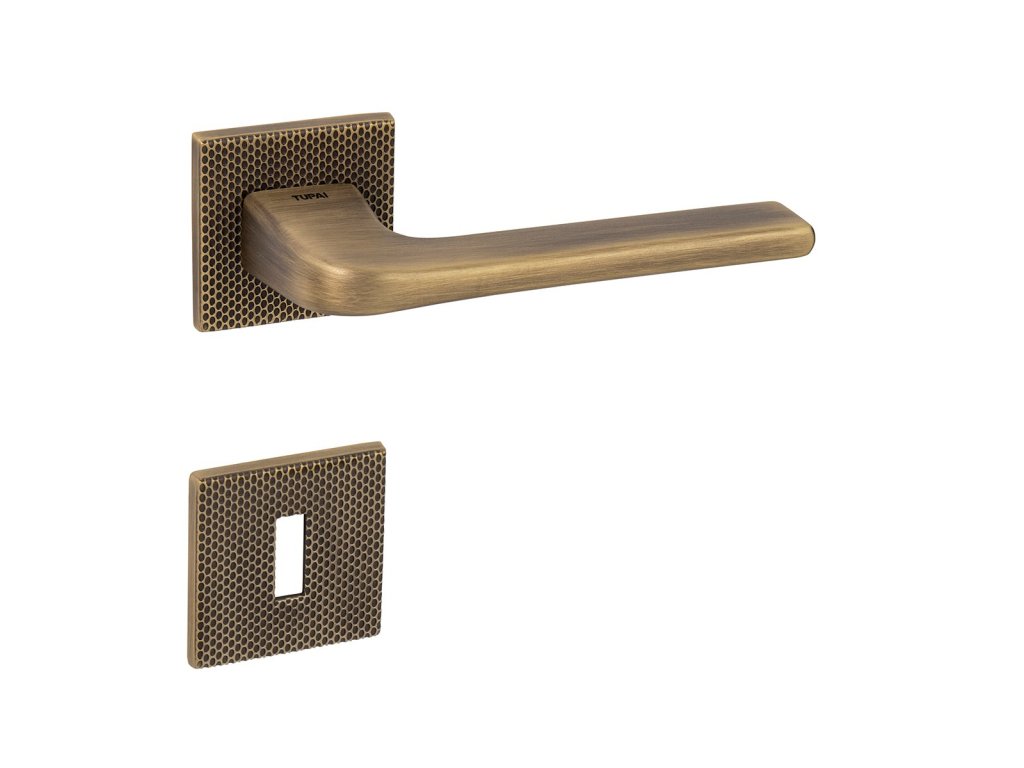 Designová rozetová klika na interiérové dveře vyrobená z kvalitního materiálu - mosaz. Čtvercová rozeta má rozměr 52 x 52 mm a tloušťku jen 5 mm.