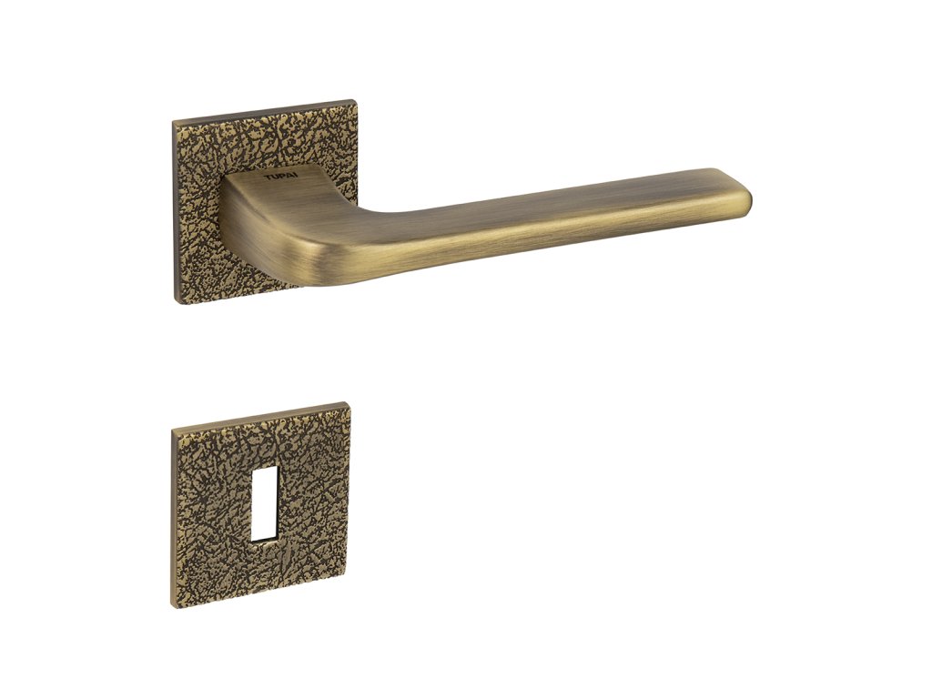 Designová rozetová klika na interiérové dveře vyrobená z kvalitního materiálu - mosaz. Čtvercová rozeta má rozměr 52 x 52 mm a tloušťku jen 5 mm.