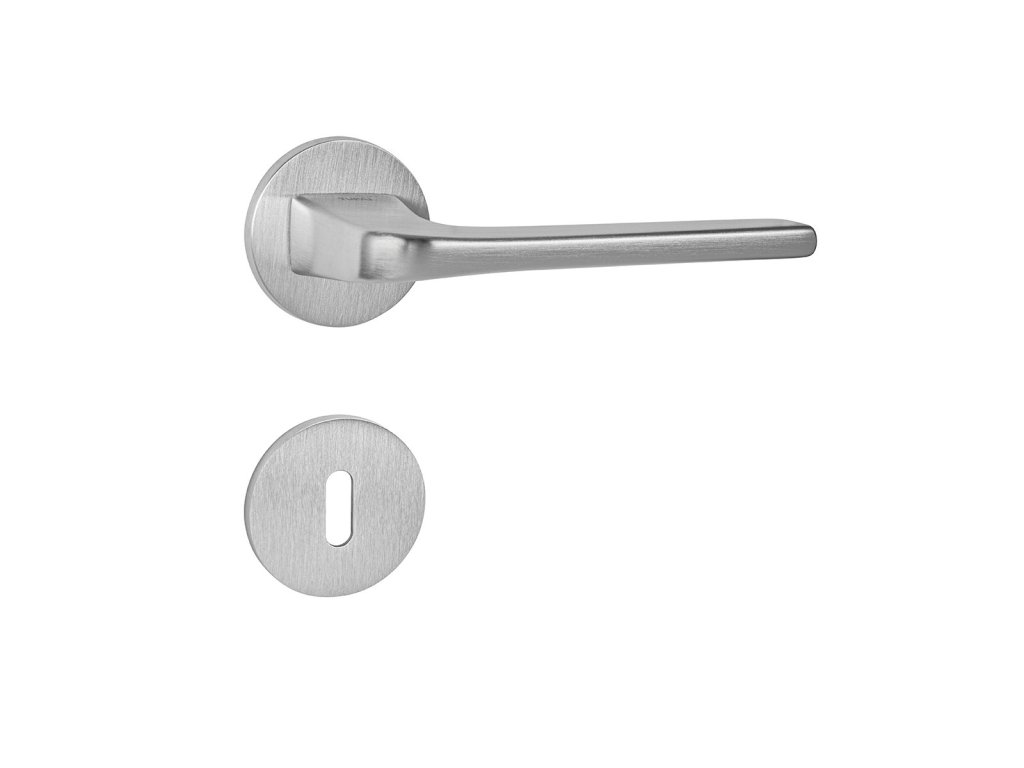 Rozetová klika na interiérové dveře s kulatou rozetou je vyrobena z materiálů vysoké kvality - mosaz a je povrchově upravena. Rozeta má průměr 52 mm a tloušťku pouze 5 mm.
