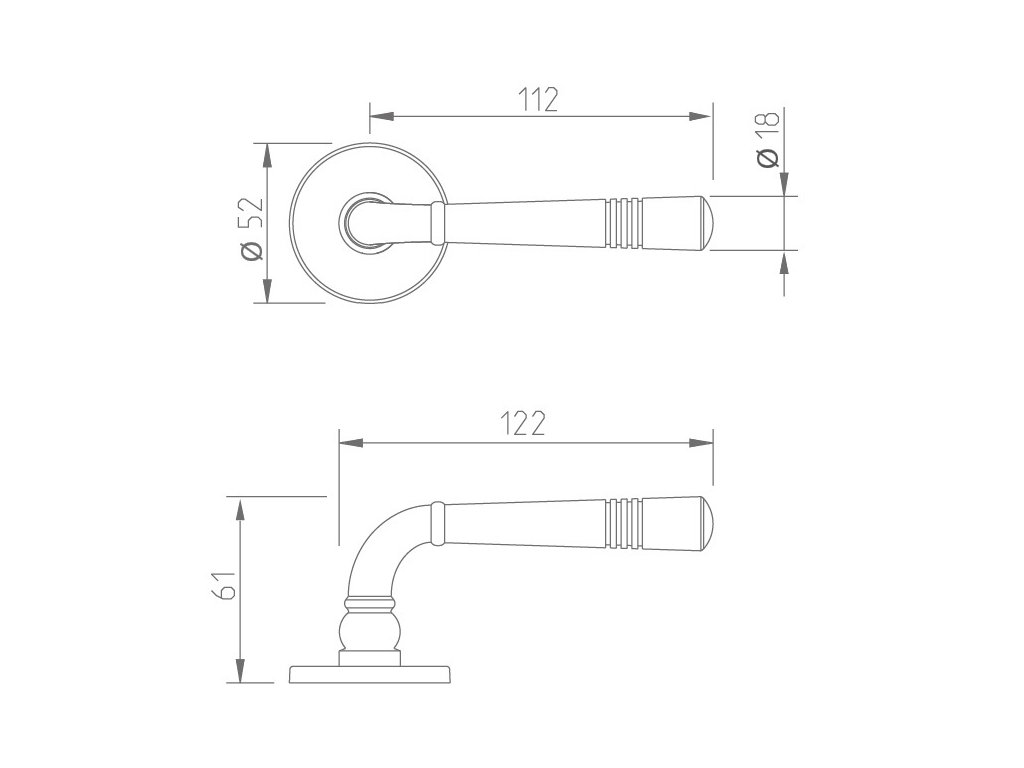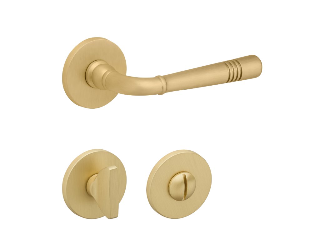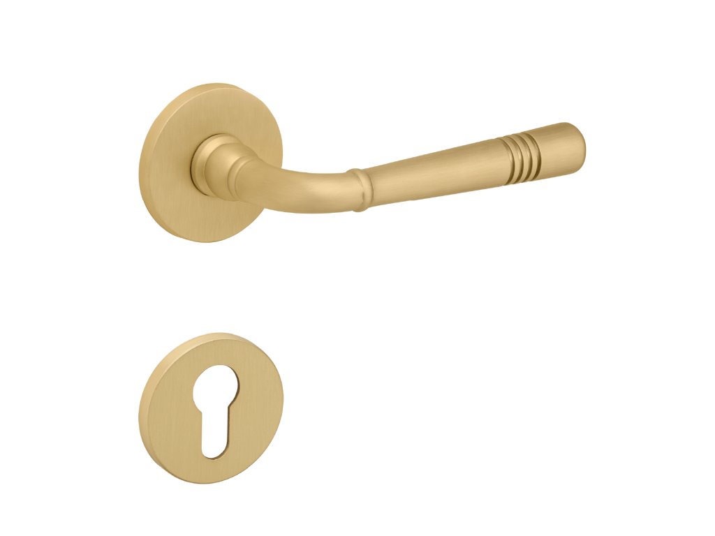 Rozetová klika na interiérové dveře s kulatou rozetou je vyrobena z materiálů vysoké kvality - mosaz a je povrchově upravena. Rozeta má průměr 52 mm a tloušťku pouze 5 mm.