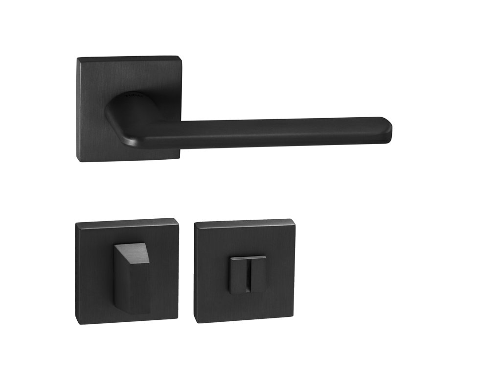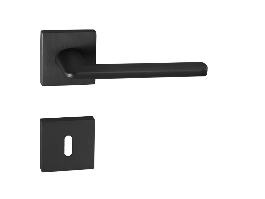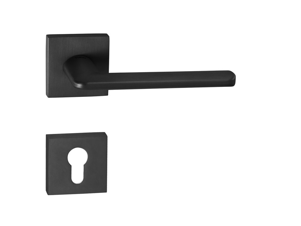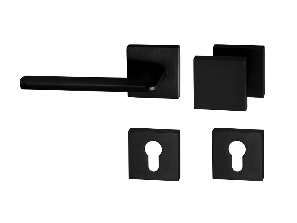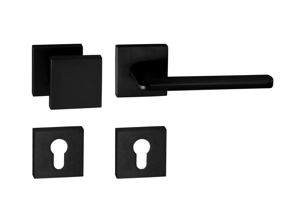 Rozetová klika na interiérové dveře s hranatou rozetou je vyrobena z materiálů vysoké kvality - zamak a je povrchově upravena. Rozeta má rozměry 52 mm x 52 mm a standardní tloušťku 11 mm.