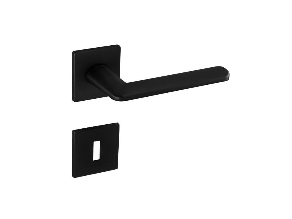 Rozetová klika na interiérové dveře s hranatou rozetou je vyrobena z materiálů vysoké kvality - zamak a je povrchově upravena. Rozeta má rozměry 52 mm x 52 mm a tloušťku pouze 5 mm.