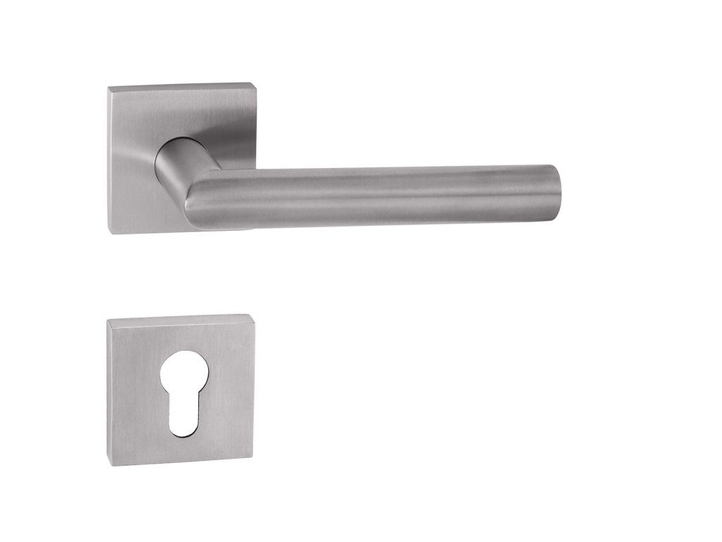 Rozetová klika na interiérové dveře s hranatou rozetou je vyrobena z vysoce kvalitní nerezavějící oceli, známé jako nerez a je povrchově upravena. Rozeta má rozměry 52 mm x 52 mm a standardní tloušťku 11 mm.