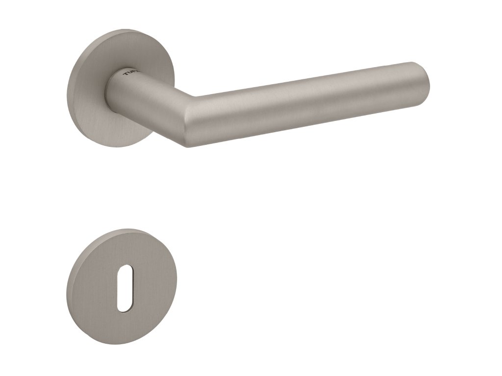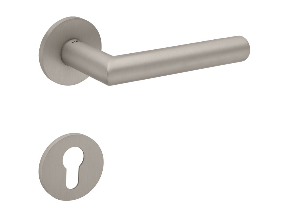 Rozetová klika na interiérové dveře s kulatou rozetou je vyrobena z vysoce kvalitní nerezavějící oceli, známé jako nerez a je povrchově upravena. Rozeta má průměr 52 mm a tloušťku pouze 5 mm.