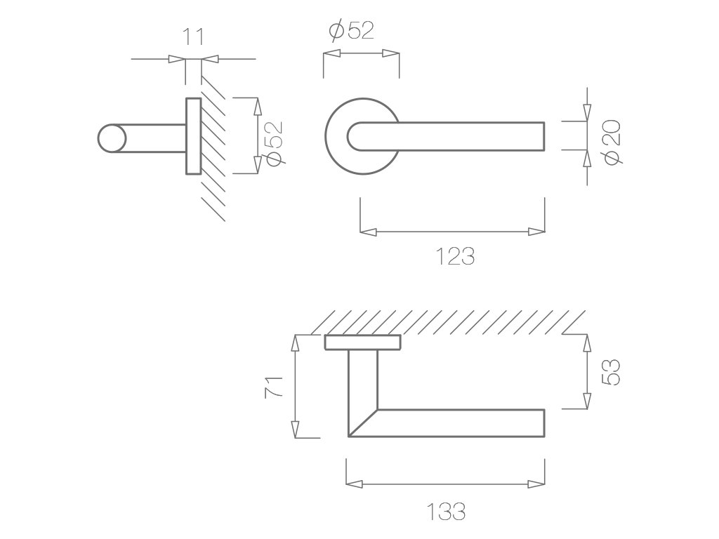 Rozetová klika na interiérové dveře s kulatou rozetou je vyrobena z vysoce kvalitní nerezavějící oceli, známé jako nerez a je povrchově upravena. Rozeta má průměr 52 mm a standardní tloušťku 11 mm.