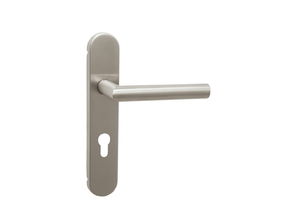 Štítová klika na interiérové dveře s oválným štítem je vyrobena z vysoce kvalitní nerezavějící oceli, známé jako nerez a je povrchově upravena. Oválný štít má rozměry 43 mm x 227 mm a klika obsahuje vratný mechanismus.