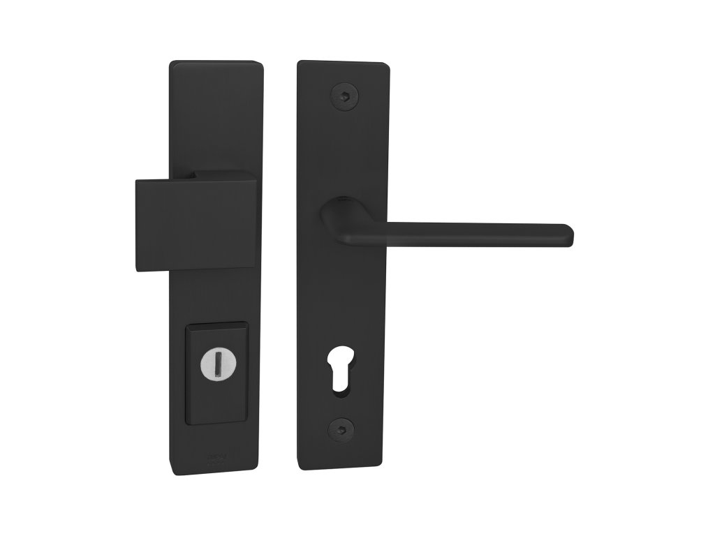 Štítová klika na vchodové a bezpečnostní dveře s bezpečnostním hranatým štítem s překrytím cylindrické vložky je vyrobena z materiálů vysoké kvality - zamak a je povrchově upravena. Hranatý štít má rozměry 52 mm x 250 mm a tloušťku 17 mm.