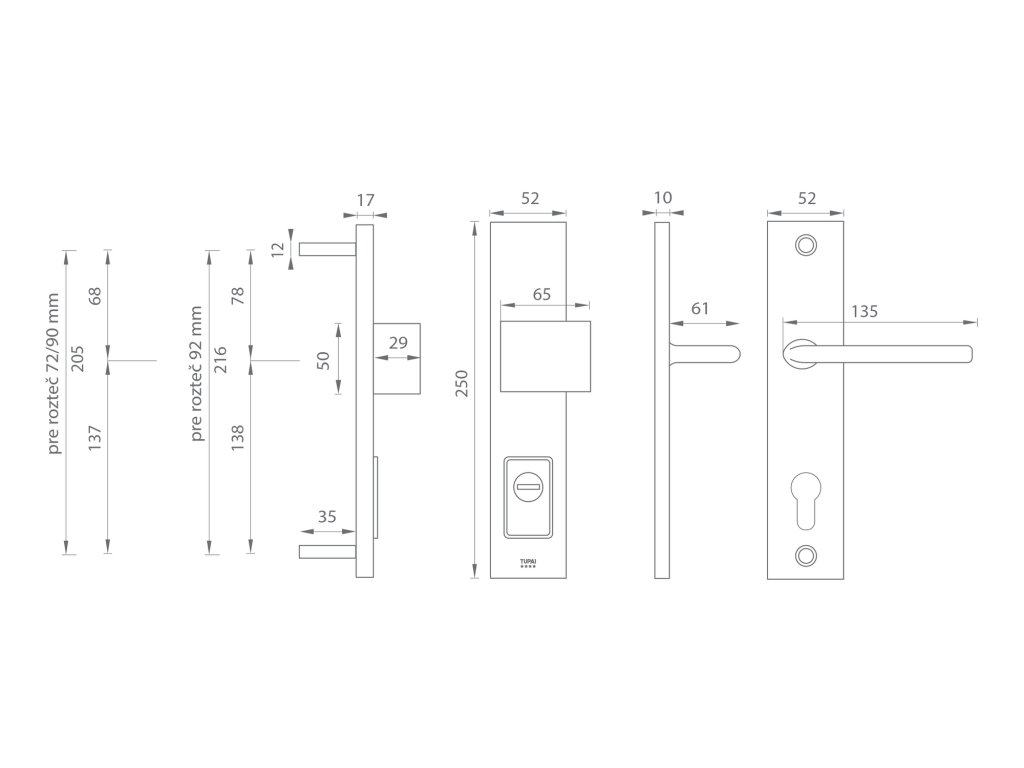 Jelikož jsme se přímo podíleli na vývoji TUPAI SAFETY LINE, můžeme zaručit kvalitu tohoto extrémně odolného kování. Madlo je kotvené na dvou pevnostních šroubech pro celoživotní fixaci bez možnosti samovolného uvolnění. Ocelová závitová pouzdra, která zajišťují prošroubování přes dveře, jsou chráněna ocelovou kuličkou a podložkou proti odvrtání. Ocelové překrytí je uchyceno z vnitřní strany na 4 pevnostní šrouby a výsuv překrytí vložky je nastavitelný do 3 mm. Mechanismus umožňuje uzamykání tahem kliky nahoru. Kování má vlastní vratný mechanismus - pružinu, která zabezpečí vodorovnou polohu kliky nezávisle na zámku.
