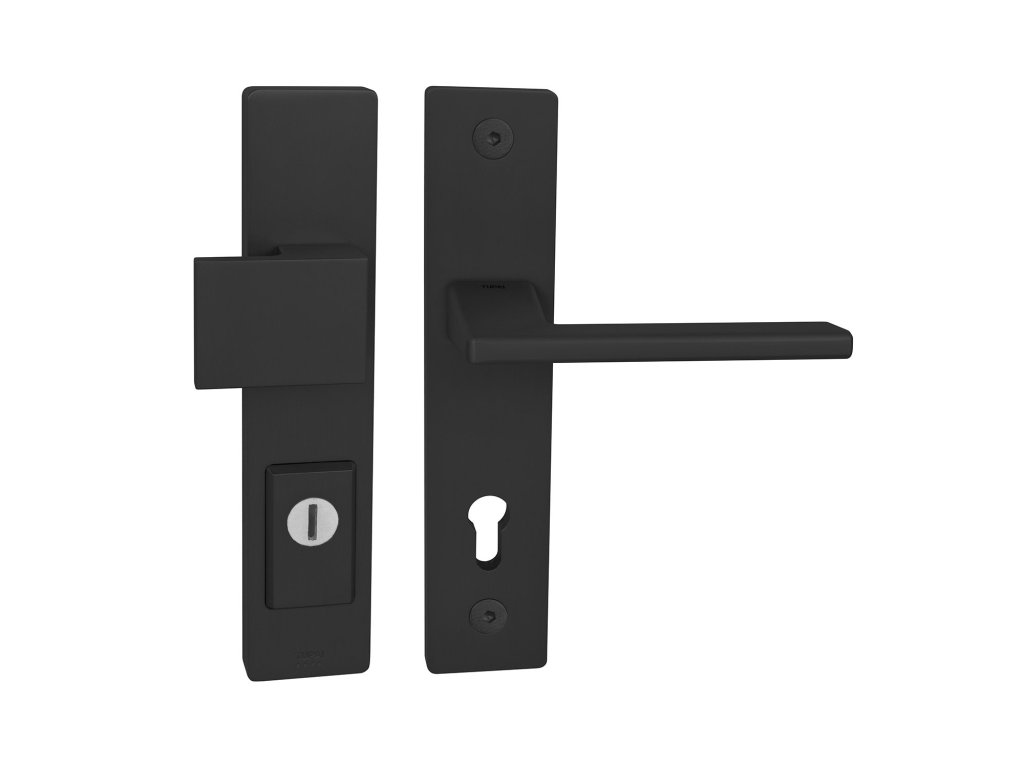 Štítová klika na vchodové a bezpečnostní dveře s bezpečnostním hranatým štítem s překrytím cylindrické vložky je vyrobena z materiálů vysoké kvality - zamak a je povrchově upravena. Hranatý štít má rozměry 52 mm x 250 mm a tloušťku 17 mm.