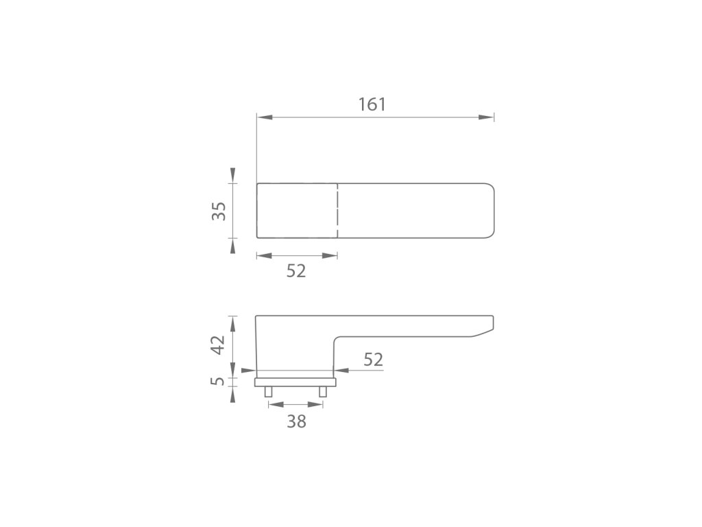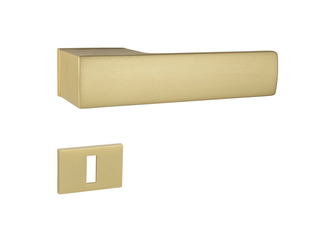 Rozetová klika na interiérové dveře s obdélníkovou rozetou je vyrobena z materiálů vysoké kvality - zamak a je povrchově upravena. Rozeta má rozměry 52 mm x 35 mm a tloušťku jen 5 mm. Samotná rozeta je součástí designu kliky.