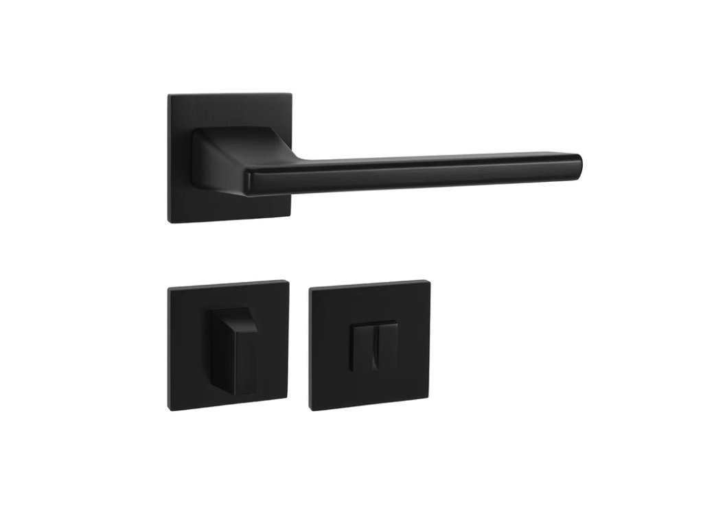 Rozetová klika na interiérové dveře s hranatou rozetou je vyrobena z materiálů vysoké kvality - zamak a je povrchově upravena. Rozeta má rozměry 52 mm x 52 mm a tloušťku pouze 5 mm.
