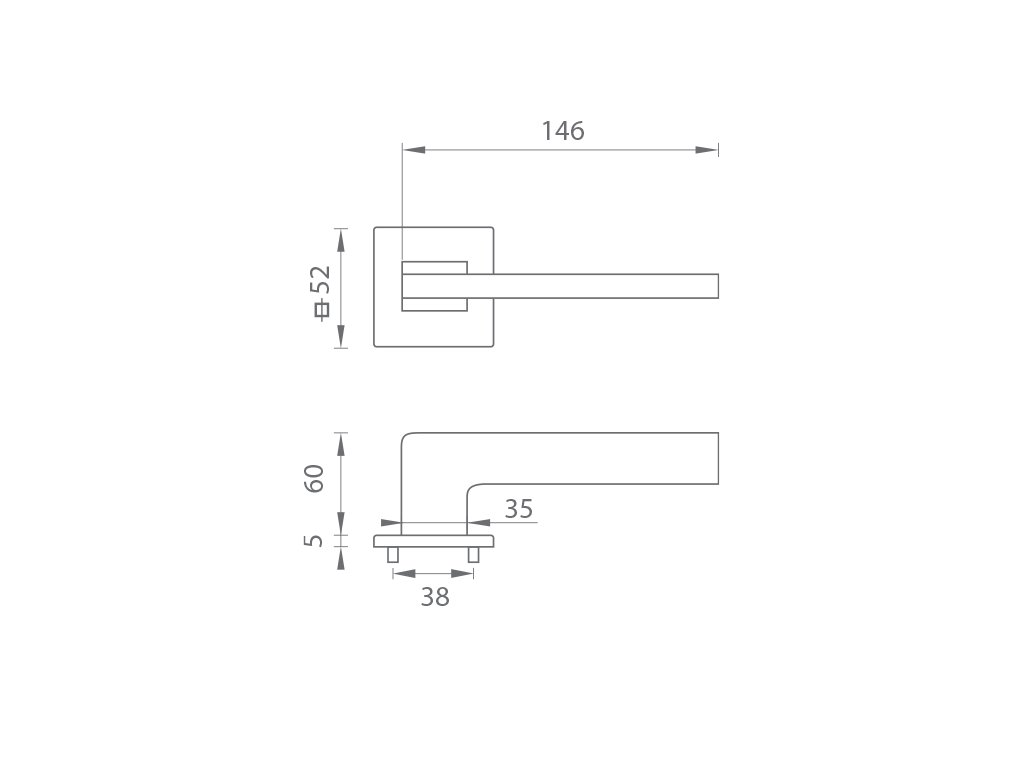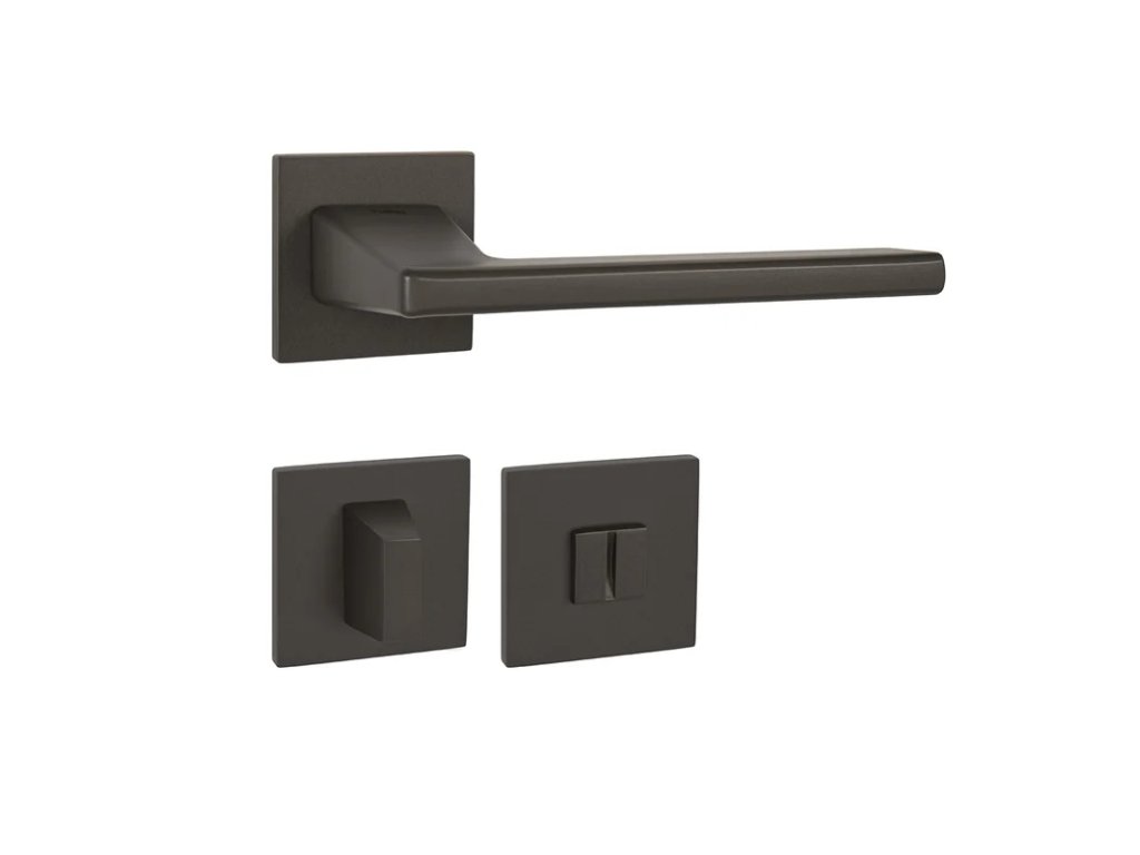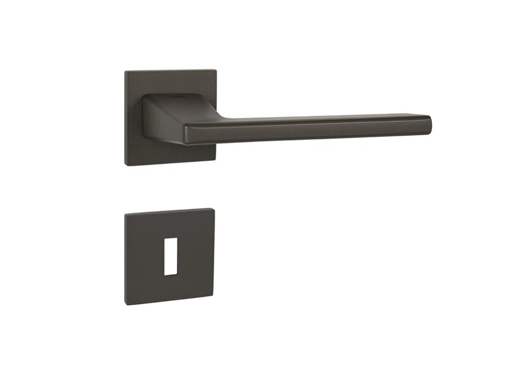 Rozetová klika na interiérové dveře s hranatou rozetou je vyrobena z materiálů vysoké kvality - zamak a je povrchově upravena. Rozeta má rozměry 52 mm x 52 mm a tloušťku pouze 5 mm.