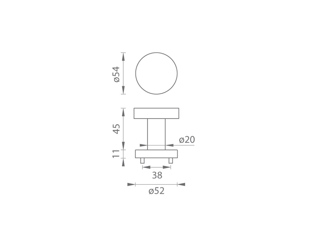 Dveřní přímá koule na kulaté rozetě je vyrobena z vysoce kvalitní nerezavějící oceli, známé jako nerez a je povrchově upravena. Koule z řady TUPAI STANDARD LINE má průměr 54 mm a kulatá rozeta má průměr 52 mm a tloušťku 11 mm.