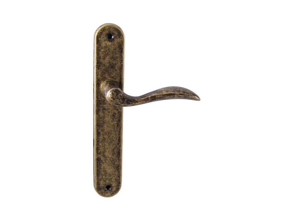 Štítová klika na interiérové dveře s oválným štítem je vyrobena z materiálů vysoké kvality - mosaz a je povrchově upravena. Oválný štít má rozměry 40 mm x 243 mm a klika obsahuje vratný mechanismus.