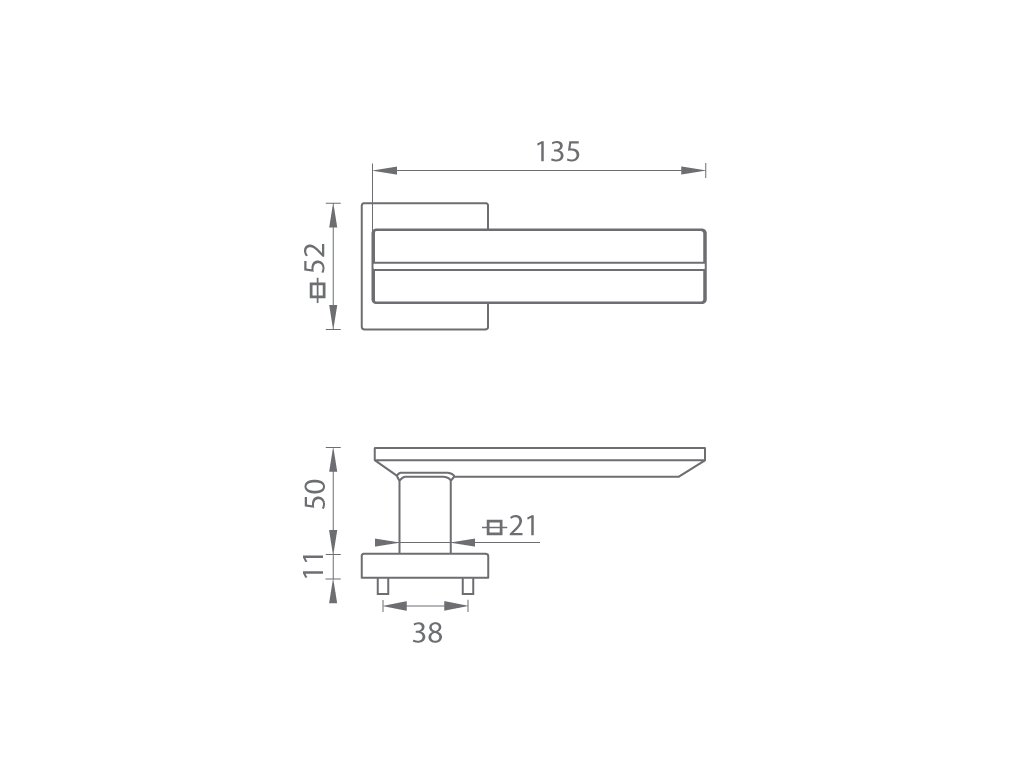 Rozetová klika na interiérové dveře s hranatou rozetou je vyrobena z materiálů vysoké kvality - zamak a je povrchově upravena. Rozeta má rozměry 52 mm x 52 mm a standardní tloušťku 11 mm.