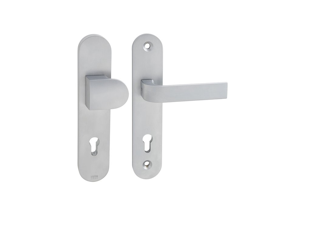 Štítová klika na vchodové a bezpečnostní dveře s bezpečnostním oválným štítem s překrytím cylindrické vložky je vyrobena z materiálů vysoké kvality - zamak a je povrchově upravena. Oválný štít má rozměry 52 mm x 250 mm a tloušťku 17 mm.