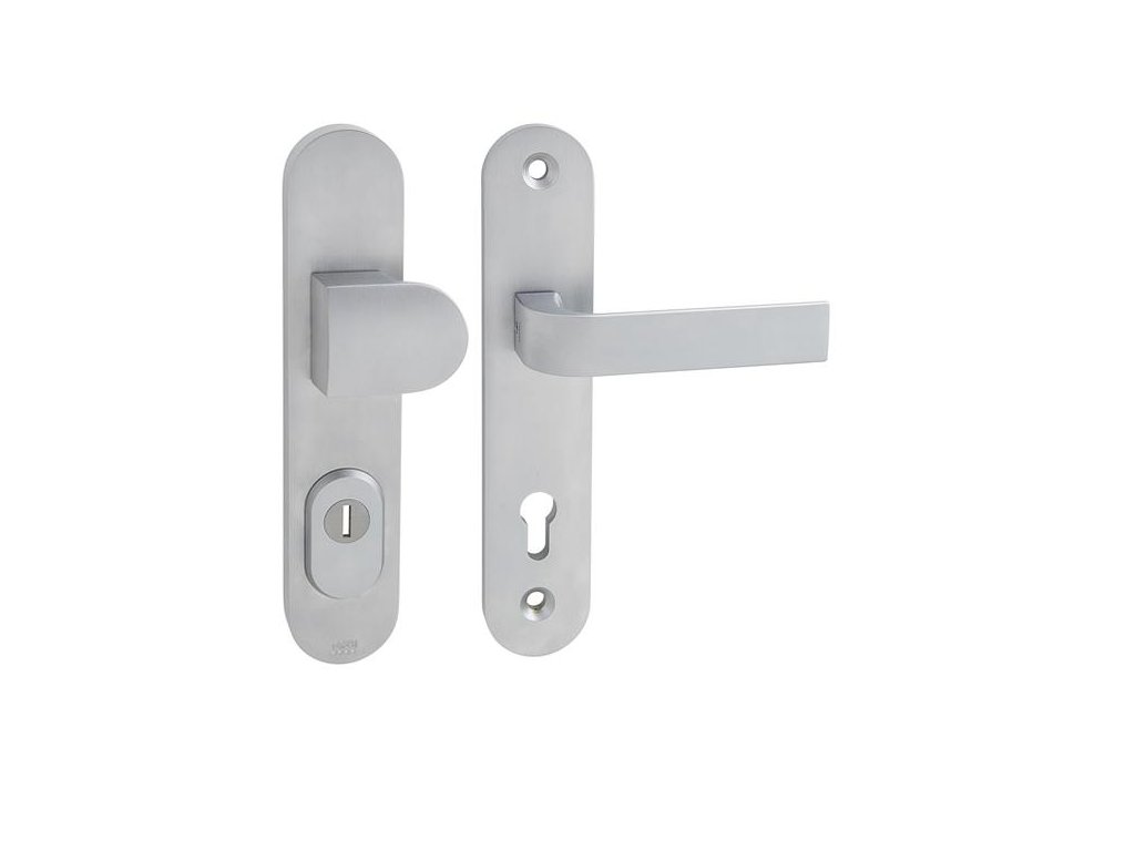 Štítová klika na vchodové a bezpečnostní dveře s bezpečnostním oválným štítem s překrytím cylindrické vložky je vyrobena z materiálů vysoké kvality - zamak a je povrchově upravena. Oválný štít má rozměry 52 mm x 250 mm a tloušťku 17 mm.