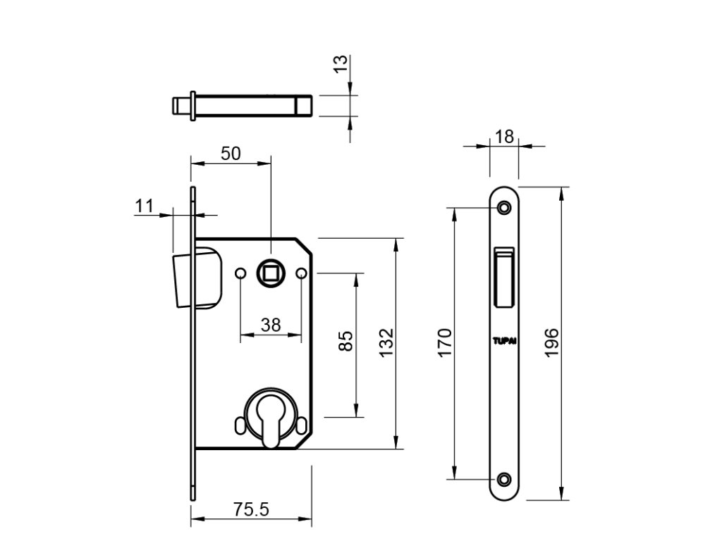 Dormas: 50 mm (vzdálenost osy kliky od lišty zámku)