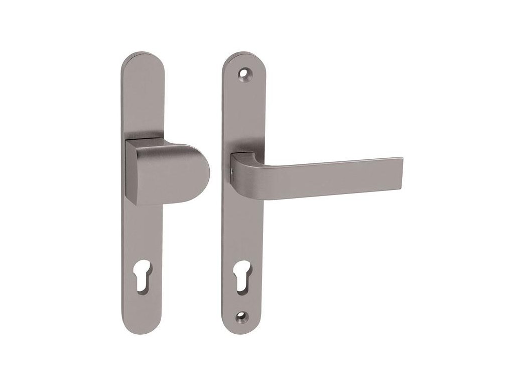 Zpevněné kování vyvinuté pro hliníkové, plastové nebo dřevěné dveře s úzkým profilem, kde se nevyžaduje bezpečnostní certifikát. Povrchová úprava chrom lesklý, chrom broušený, bílá, černá jsou vhodné i do exteriéru.