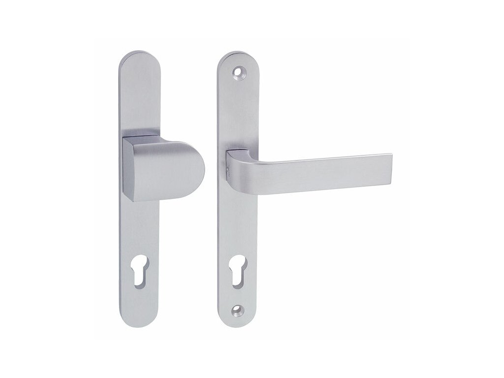 Zpevněné kování vyvinuté pro hliníkové, plastové nebo dřevěné dveře s úzkým profilem, kde se nevyžaduje bezpečnostní certifikát. Povrchová úprava chrom lesklý, chrom broušený, bílá, černá jsou vhodné i do exteriéru.
