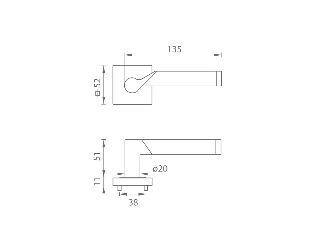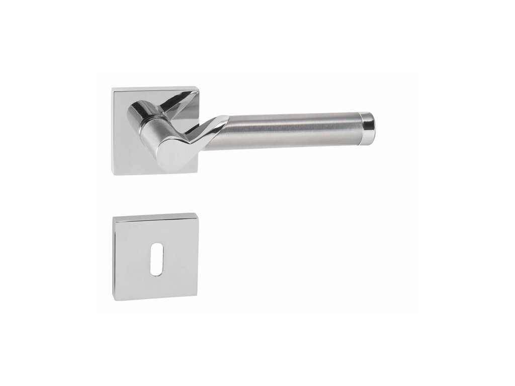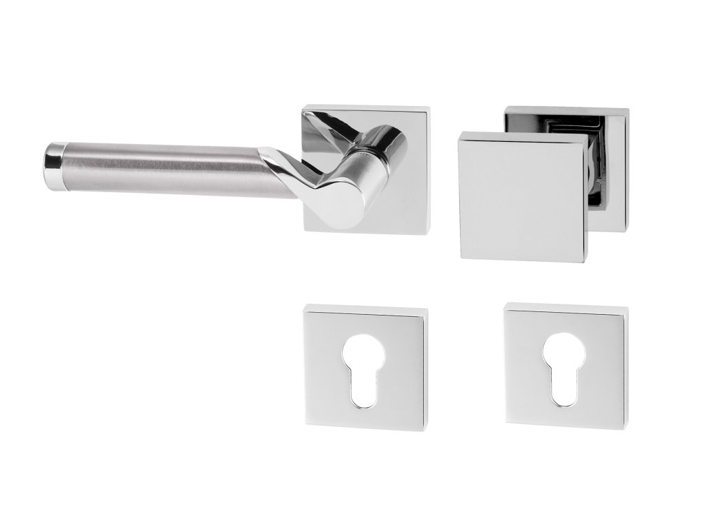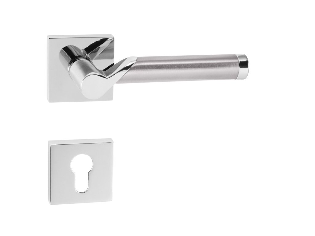 Rozetová klika na interiérové dveře s hranatou rozetou je vyrobena z materiálů vysoké kvality - zamak a z kvalitní nerezavějící oceli, známé jako nerez a je povrchově upravena. Rozeta má rozměry 52 mm x 52 mm a standardní tloušťku 11 mm.