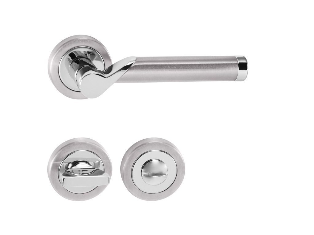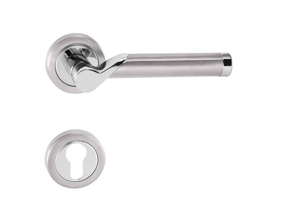 Rozetová klika na interiérové dveře s kulatou rozetou je vyrobena z materiálů vysoké kvality - zamak a z kvalitní nerezavějící oceli, známé jako nerez a je povrchově upravena. Rozeta má průměr 52 mm a standardní tloušťku 11 mm.