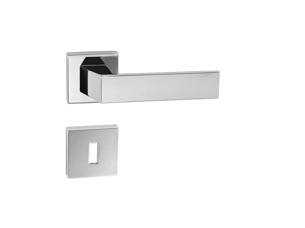 Rozetová klika na interiérové dveře s hranatou rozetou je vyrobena z materiálů vysoké kvality - zamak a je povrchově upravena. Rozeta má rozměry 52 mm x 52 mm a standardní tloušťku 11 mm.