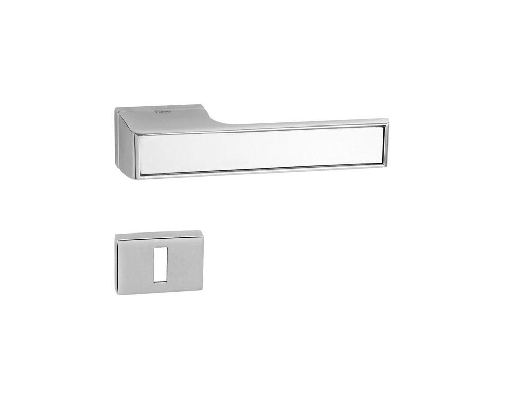 Rozetová klika na interiérové dveře s obdélníkovou rozetou je vyrobena z materiálů vysoké kvality - zamak a je povrchově upravena. Rozeta má rozměry 52 mm x 35 mm a standardní tloušťku 11 mm. Samotná rozeta je součástí designu kliky.