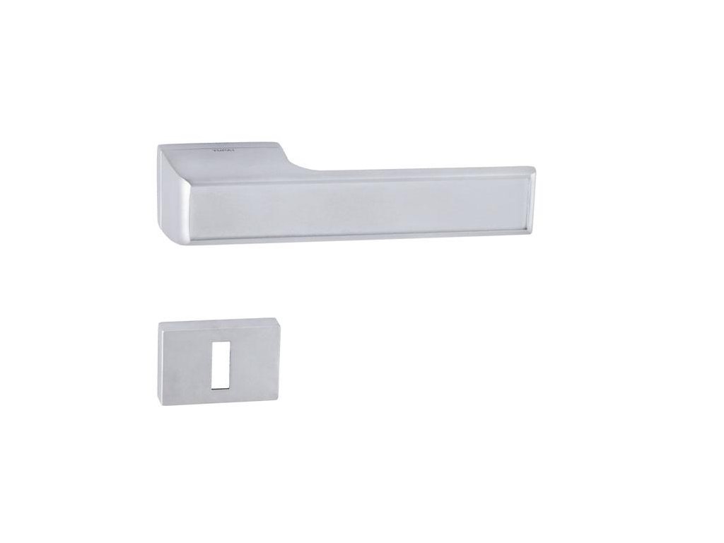Rozetová klika na interiérové dveře s obdélníkovou rozetou je vyrobena z materiálů vysoké kvality - zamak a je povrchově upravena. Rozeta má rozměry 52 mm x 35 mm a standardní tloušťku 11 mm. Samotná rozeta je součástí designu kliky.