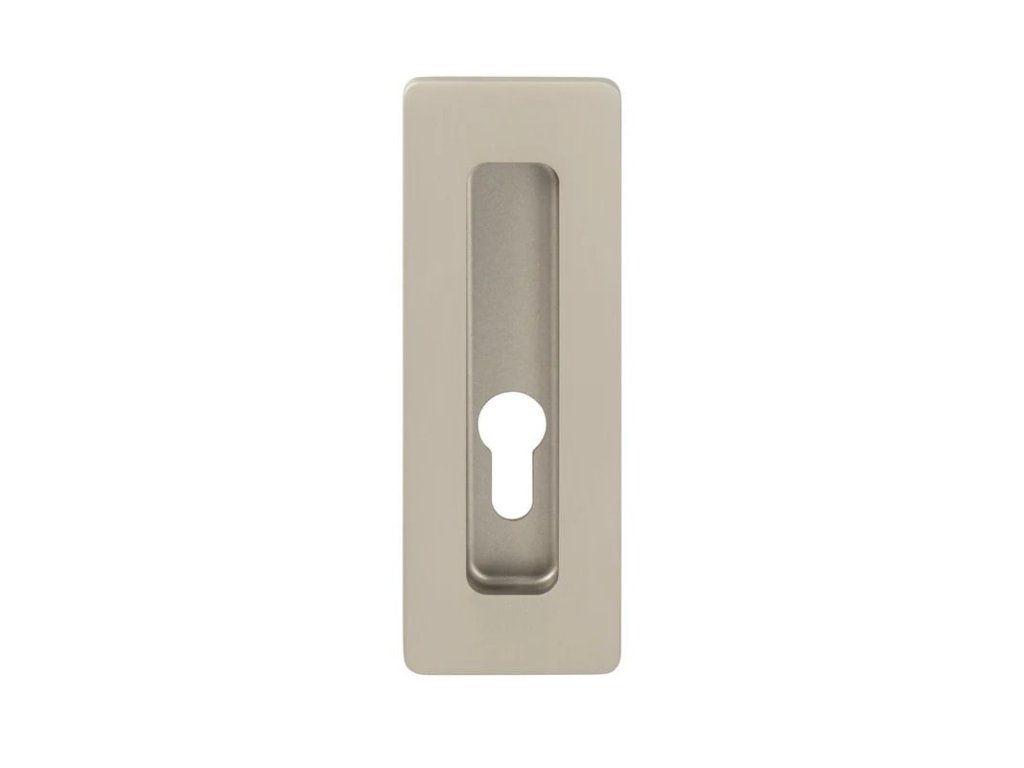 Hranatá mušle s PZ otvorem pro vložku na posuvné dveře je vyrobená z kvalitního materiálu mosaz/zamak - slitina zinku a je povrchově upravená.