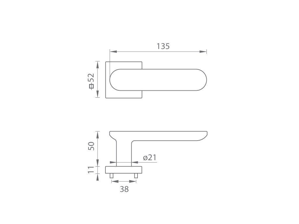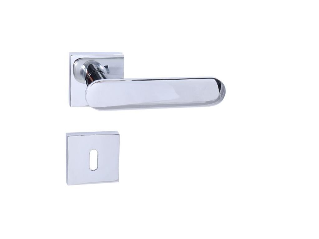 Rozetová klika na interiérové dveře s hranatou rozetou je vyrobena z materiálů vysoké kvality - mosaz a je povrchově upravena. Rozeta má rozměry 52 mm x 52 mm a standardní tloušťku 11 mm.