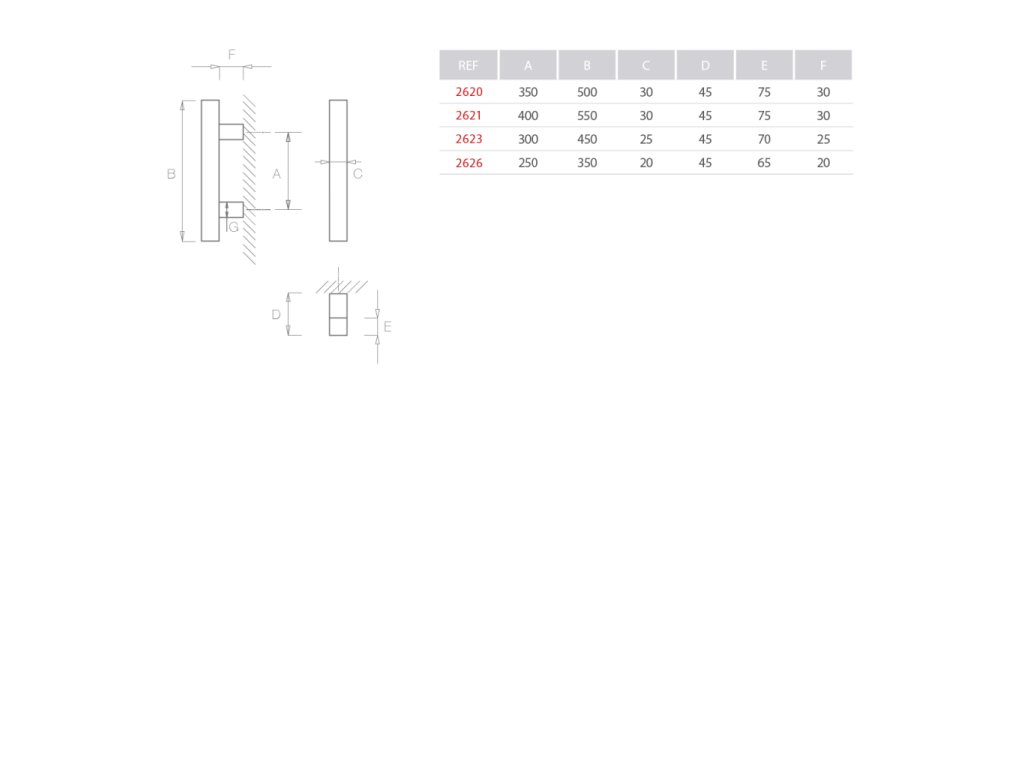 Rozteč šroubů 250 mm, délka madla 350 mm.