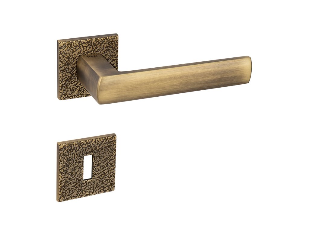 Designová rozetová klika na interiérové dveře vyrobená z kvalitního materiálu - mosaz. Čtvercová rozeta má rozměr 52 x 52 mm a tloušťku jen 5 mm.