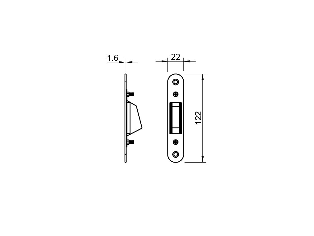 Protiplech má rozměry 22 mm x 122 mm a je nastavitelný 1,5 mm do každé strany.