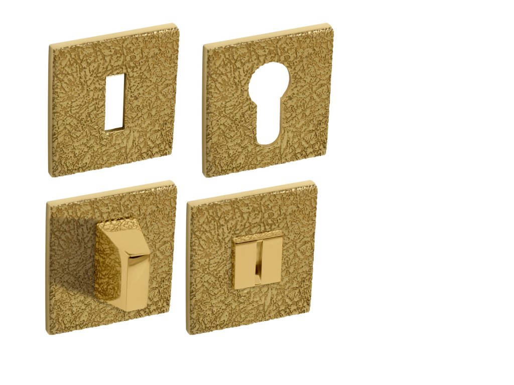 Hranatá rozeta je vyrobená z materiálů vysoké kvality - mosaz a je povrchově upravená. Rozeta má rozměry 52 mm x 52 mm, tloušťku jen 5 mm a hranatý otvor pro interiérový klíč (BBQ), otvor pro cylindrickou vložku (PZ) anebo WC set s vmontovaným klíčem.
