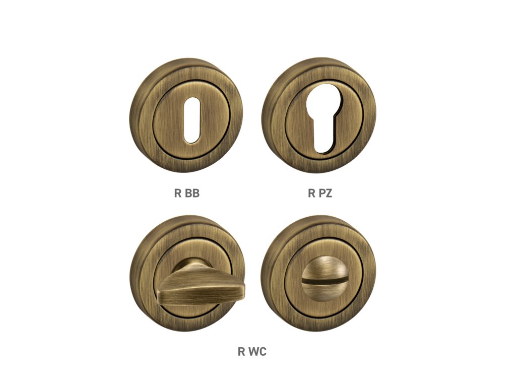 Kulatá rozeta ke klice na dveře je vyrobená z materiálů vysoké kvality - mosaz a je povrchově upravená.