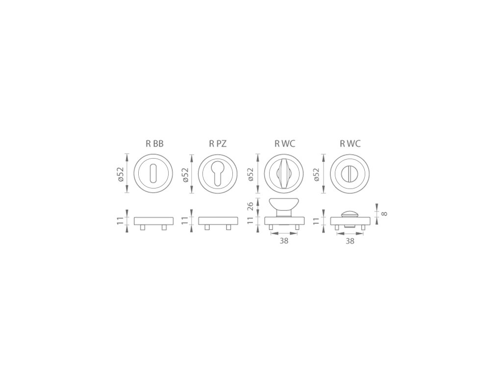 Kulatá rozeta ke klice na dveře je vyrobená z materiálů vysoké kvality - mosaz a je povrchově upravená.