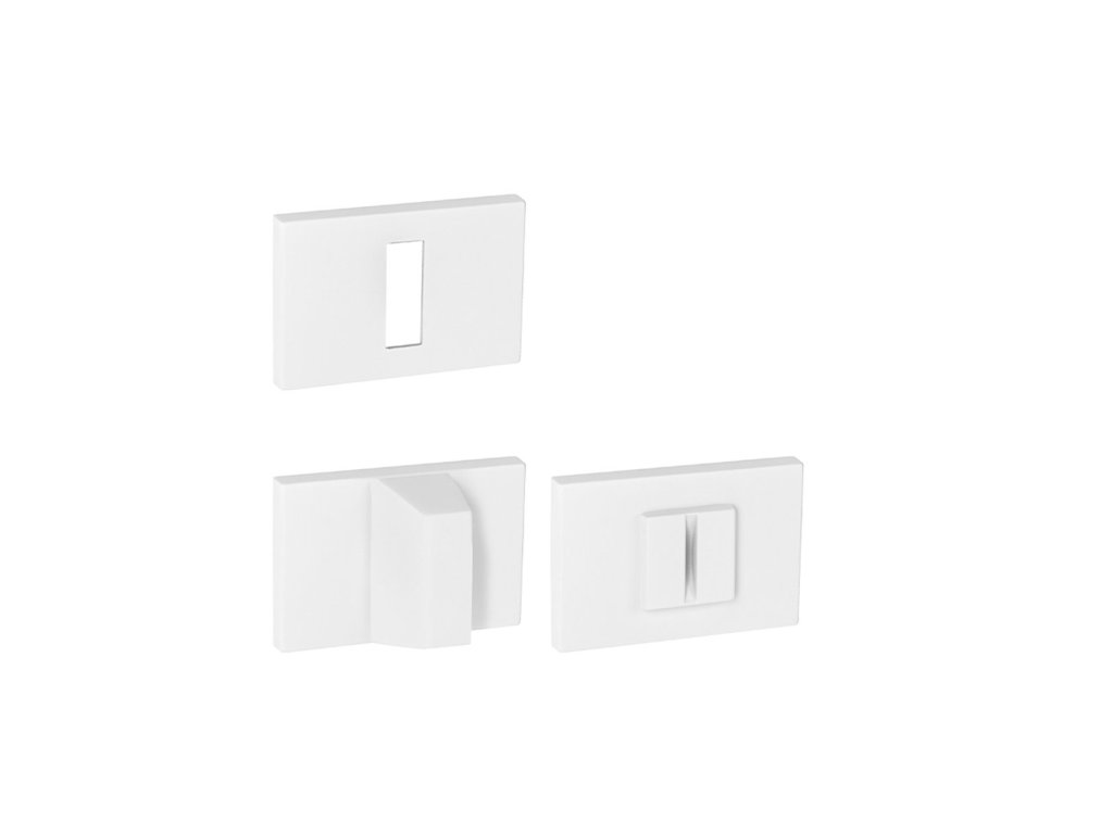 Rozeta má hranatý otvor pro interiérový klíč (BBQ) anebo WC set s vmontovaným klíčem. Balení obsahuje 2 kusy rozet (pár) a rozety WC jsou v balení jako set.